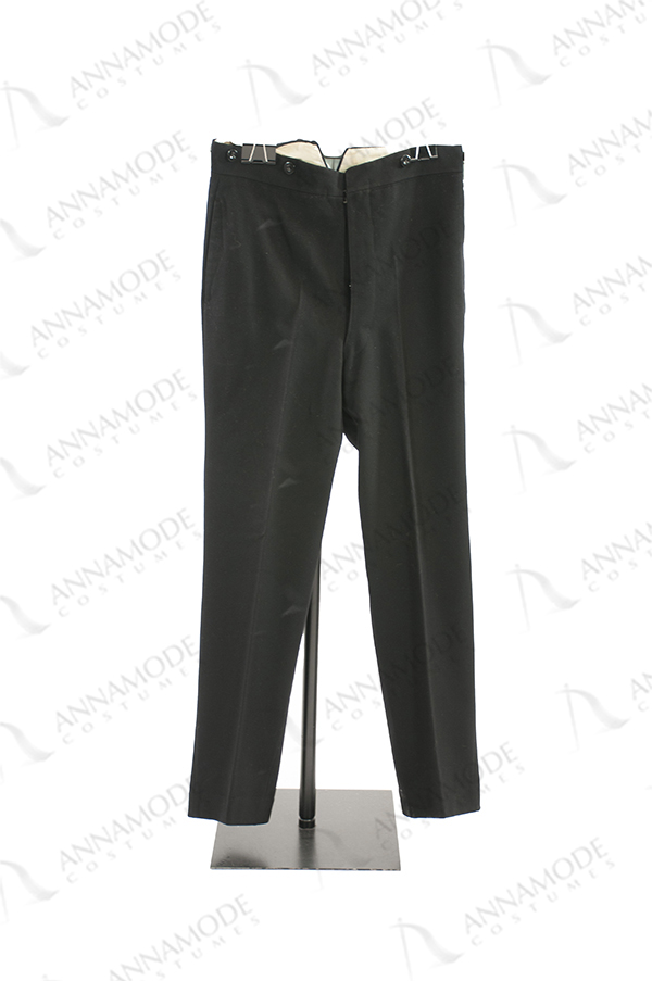 Men's black beaver trousers with strap on the back.
