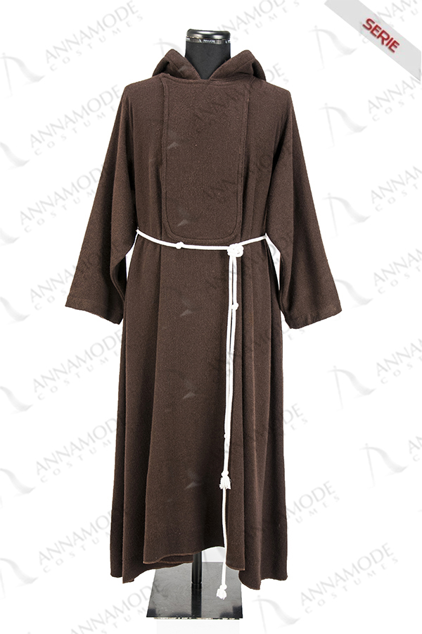 Vestizione frate cappuccino in lana marrone: tonaca con tasca e cappuccio cuciti; cordone bianco.